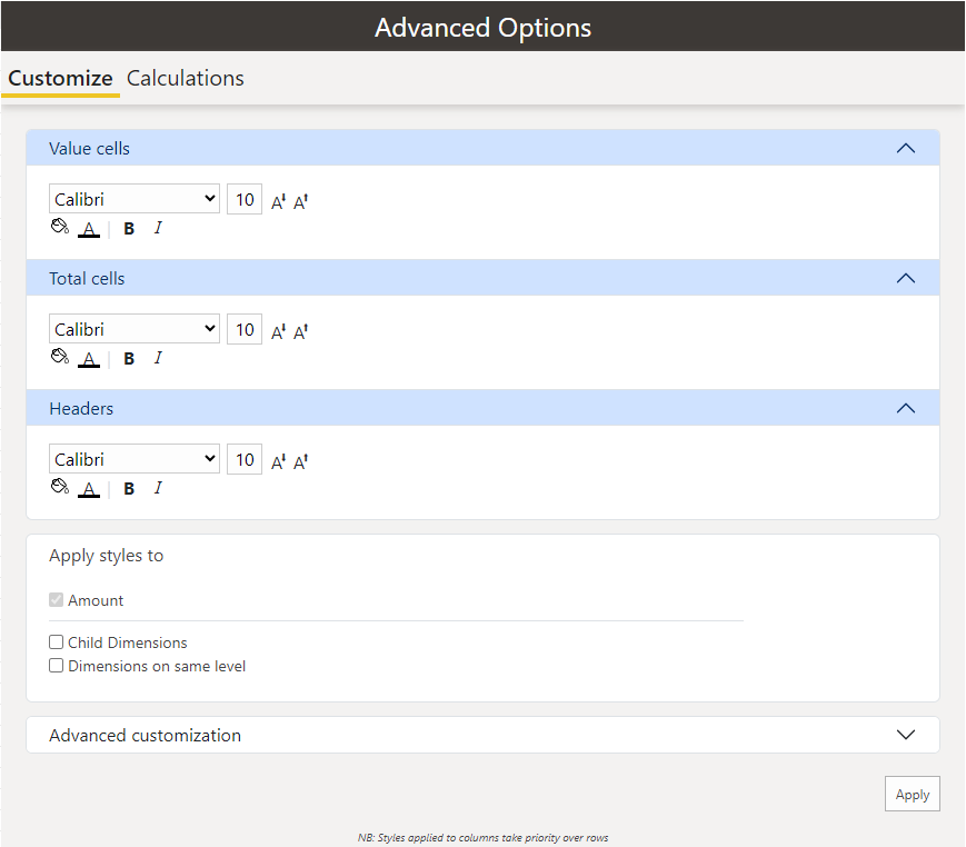 If styling should be added only to a single row, styling by Advanced Editor can be used.
