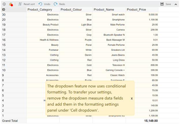 The drop-down feature has been updated to use conditional formatting. All dropdown fields that were set up prior to version 1.0.63.6 (released 13/12/2023) must be updated to utilize the new method.