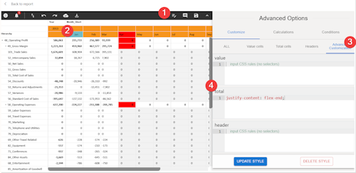 When a measure is marked as non-writable or locked by a locking measure, the alignment on totals defaults to left. Any attempt to change this alignment via the GUI will have no effect (except for CSS). This issue has been identified and will be fixed in the next release.