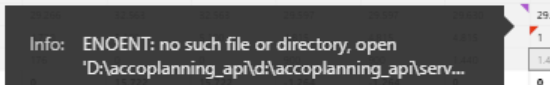 Error: No such file or directory, open ......... ![]() | You are using the self hosted API and it either need to be updated to a newer version or you have issues at server where the Selfhostet API is installed. The error is from your selfhosted api, it is an error because it couldn’t find the necessary file at the location that was specified when it was first started/was specified in the windows service config. | Tjeck if the server have any issues - missing disk space, need windows update ect. Download and install the newest version of the API on the server (Get it here: https://kb.accobat.com/kb/guide/en/download-self-hosted-api-KMC4L1CaR5/Steps/3781707). |