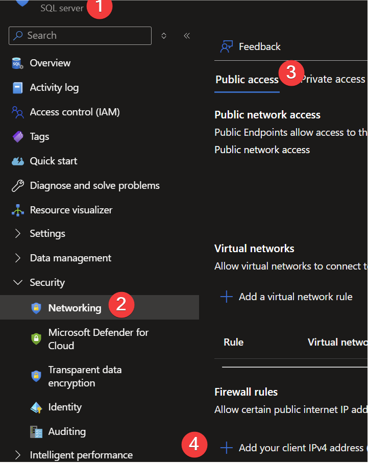 Reason: An instance-specific error occurred while establishing a connection to SQL Server. Connection was denied since Deny Public Network Access is set to Yes (https://docs.microsoft.com/azure/azure-sql/database/connectivity-settings#deny-public-network-access). To connect to this server, use the Private Endpoint from inside your virtual network (https://docs.microsoft.com/azure/sql-database/sql-database-private-endpoint-overview#how-to-set-up-private-link-for-azure-sql-database). | Your Azure SQL server is configured with no public network access and the firewall prevent the accoTOOL API to access the SQL database. | Open for Public network access on the Azure SQL server in the Azure portal or open the following IP address in the firewall settings on the Azure SQL server.