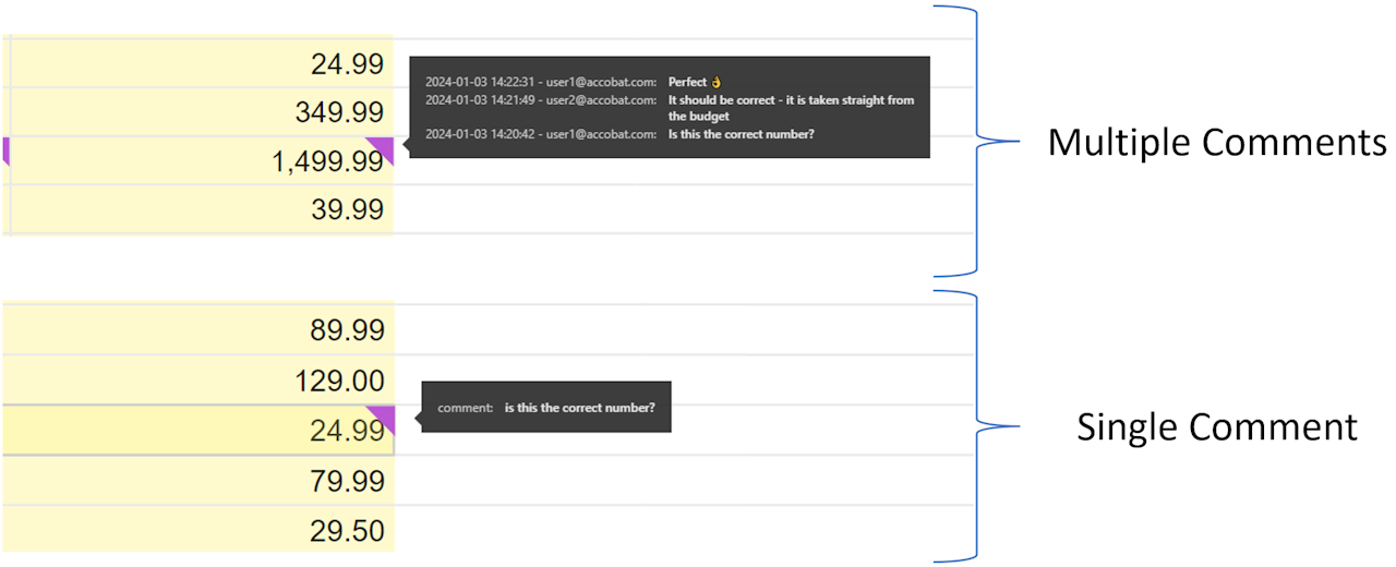 Comments can be configured to either display a single comment or multiple comments, allowing for a dialog. Setting up a single comment is simpler than configuring multiple comments, but the latter is often the preferred solution. The picture illustrates both types of comments.